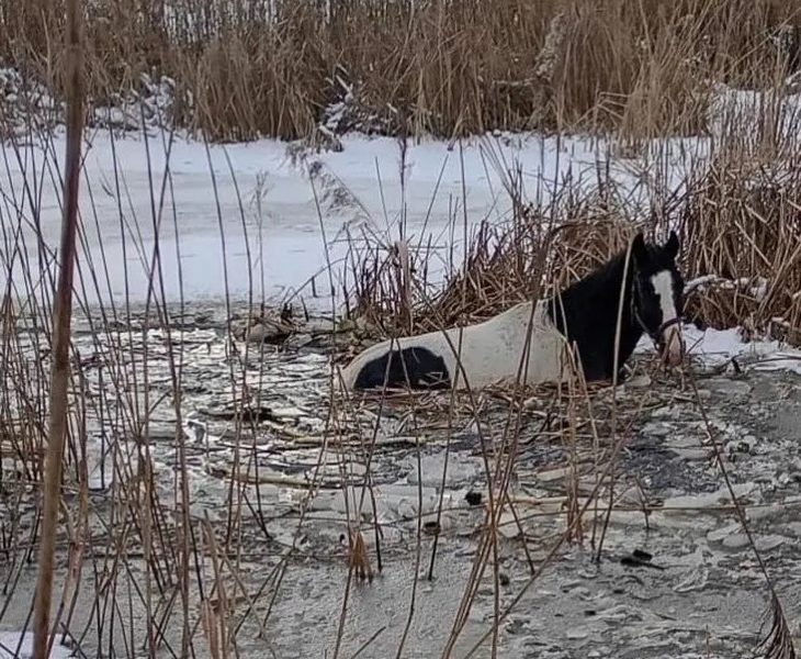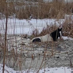 To tam jeden z koni wszedł na taflę lodu. Lód załamał się pod zwierzęciem, a rumak wpadł do lodowatej wody i nie był stanie sam się wydostać! Na miejsce wezwano straż pożarną i 10 strażaków walczyło o życie konia.