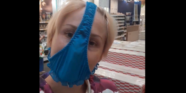Zamiast maseczki założyła majtki na twarz. Zobacz VIDEO!