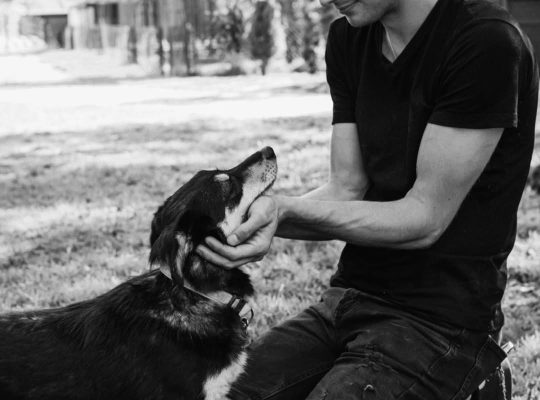 Radek Majdan i pies George w takich samych sweterkach. „No żeby teraz się żona nie pomyliła 🤔”