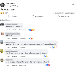 Hej Rafał, martwimy się o Ciebie. Daj znać, co się dzieje.